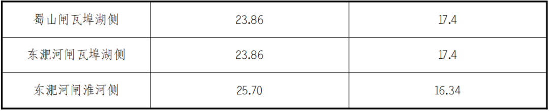 工程沿線建有5個錨地,分別為東淝河閘上、閘下錨地,蜀山閘上、閘下錨地,派河閘上錨地。
